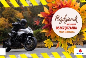Początek jesieni to najlepsza okazja, aby skorzystać ze specjalnych warunków promocyjnej akcji serwisowej skierowanej do posiadaczy motocykli i quadów marki Suzuki - "Październik miesiącem oszczędzania". Klienci mogą liczyć na atrakcyjne rabaty na części, akcesoria i robociznę.